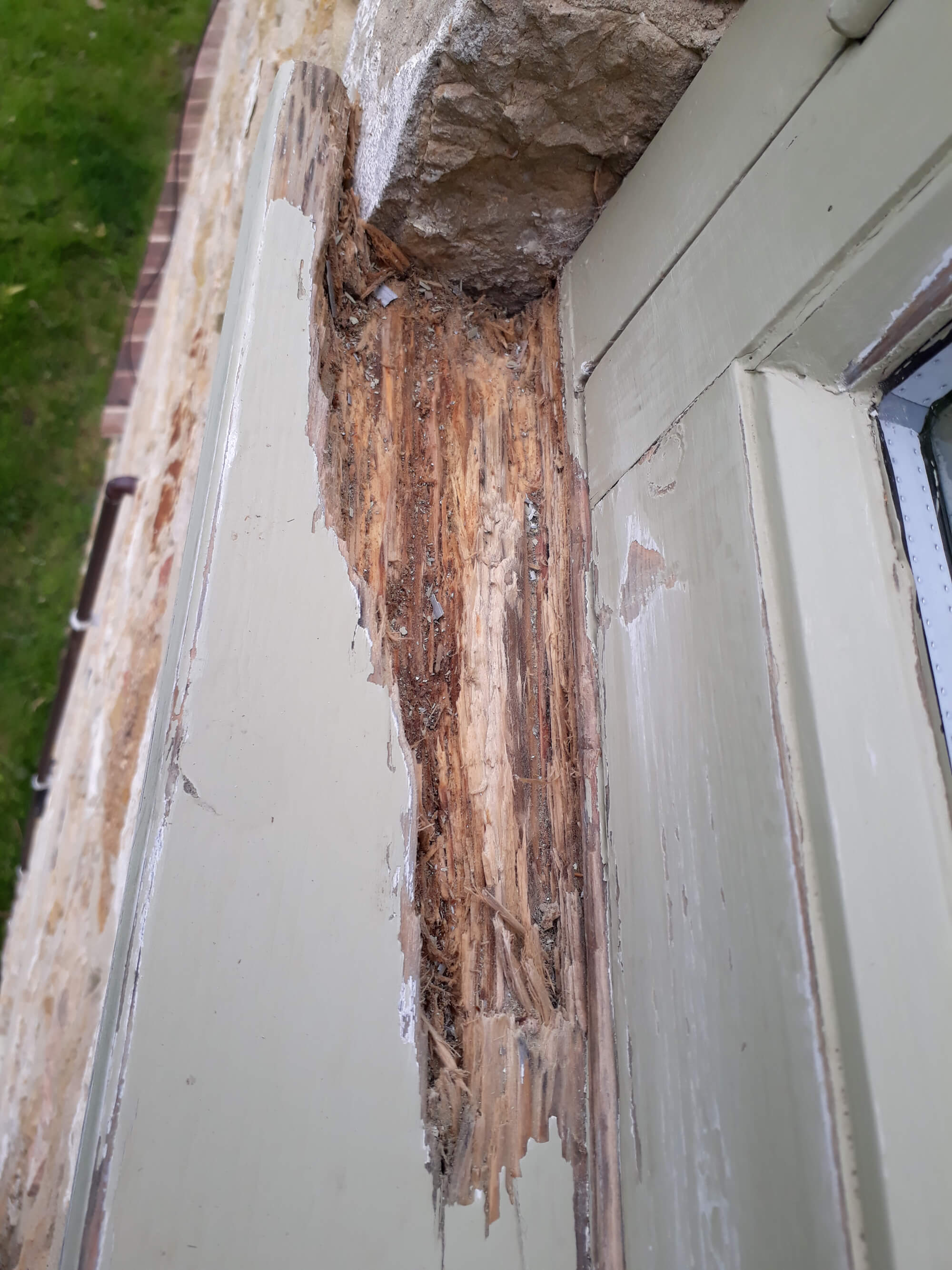 Badly damaged timber requiring extension restoration using modern compounds that stand the test of time..